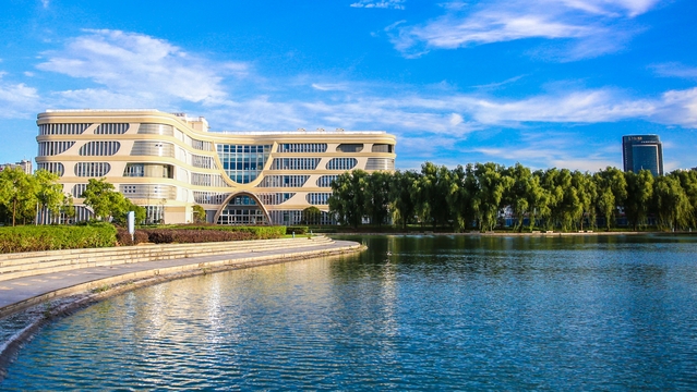 新馆建筑呈独特的“L”型,环抱美丽的思源湖,是一个现代化、全开架、自助式的多功能图书馆。新馆集信息资源中心、学习研究中心、学术交流中心于一体,提供16个研修室和研讨空间,配备人脸识别、自助借书还书以及远程选座等智能化、信息化功能,建立了“管理驾驶仓”和大数据的信息发布系统,图书馆将秉持“以读者为本”的办馆理念为师生学习、阅读、研讨提供便捷的一站式服务。