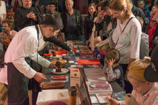 配合中国武术之夜演出,考门斯基大学孔子学院在演出大厅外举办了孔子学院日中国书法展和中国非物质文化遗产苏州桃花坞木刻年画展。上海交通大学文创学院教授、博士生导师、中国书法文化国际传播研究所所长周斌先生和国家级非物质文化遗产苏州桃花坞木刻年画传承人乔兰蓉(乔麦)女士向斯洛伐克民众展示了从中国带来的数十幅精品创作。现场观众纷纷参与交流互动,林琳大使也亲自体验了木刻版画孔子像的制作。
