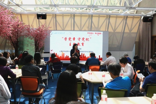 随后,会展旅游学院党总支书记武增勇主持学习会。马克思主义学院党总支书记、院长秦淑娟以“学党章守党纪”为主题,带领全体党员集体学习《中国共产党章程》。她向全体党员介绍了党章的诞生以及党章的结构,强调学习党章的重要意义,并领读了《党章》的“总纲”、“党员的权利和义务”等内容,要求全体党员要学习党章,遵守党纪,做新时代合格的共产党员。