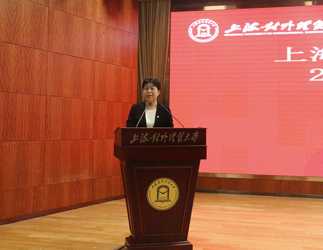 许玫在“寄语未来”篇章致辞,对全体法学院新生的到来表示热烈欢迎和衷心祝贺,她对全体新生提出了三点希望,希望同学们要胸怀祖国,树立远大理想;要立德修身,不断提升自身道德境界;要努力学习,勇于砥砺奋进,用实际行动擦亮自己“中国大学生”的名片。她勉励所有带着青春梦想来到上贸大法学院的学子们,在为中国法治事业不懈奋斗的道路上,做信仰坚定、奋发有为的新时代青年。