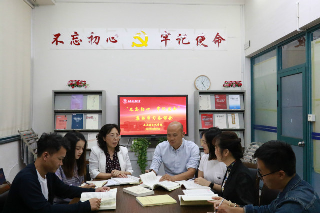 马克思主义学院举办集体备课会,开设“我与新中国,同年龄共成长”思政第一课;国际经贸学院牵头举行应用经济学科“学理论、勇担当、解难题、谋发展”主题教育集体学习座谈会,研讨智库、平台与学科一体化建设;会计学院联合工商管理学院、人工智能与变革管理研究院举行“学党史、明国情、展未来——新中国成立70周年”的专题报告;统计与信息学院、国际经贸学院、“一带一路”国家经贸关系与合作高等研究院和自贸港战略研究院举办“服务进口博览会,共建全球贸易监测分析中心(上海)”主题教育调研座谈会;国际商务外语学院编撰“主题教育理论学习名词汇编”;金融管理学院开展“楼寝党建”微党课系列活动;贸易谈判学院党总支举行主题教育校史专题学习;法学院集体学习《优秀共产党员先进事迹选编》;工商管理学院教工、学生党支部结对共建“初心故事”宣讲团;会展与旅游学院开展“不忘初心,牢记使命”主题教育—服务第二届进博会志愿者培训会。
