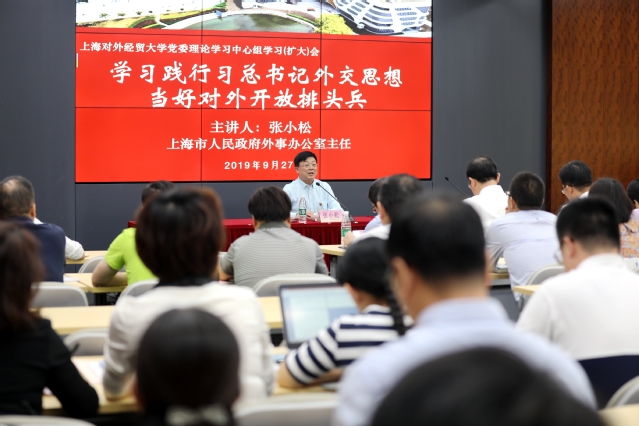学校邀请上海市人民政府外事办公室主任张小松作题为“学习实践总书记外交思想,当好对外开放排头兵”的辅导报告。学校领导班子成员多次研讨就学校如何更好地服务国家和上海发展战略,加强决策咨询和智库建设,发挥外贸特色,提升外事合作质量,提高学校综合办学实力和社会声誉达成共识。