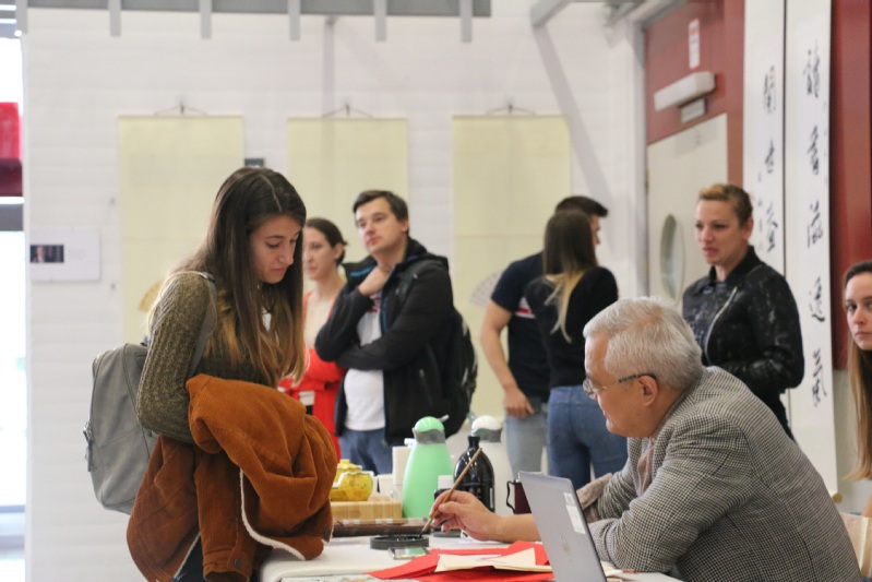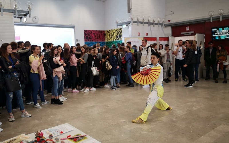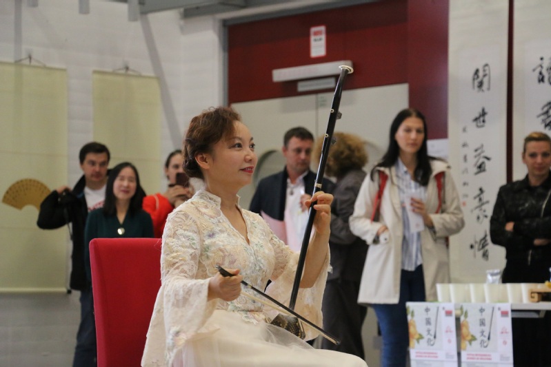 当地时间10月11日,卢布尔雅那大学孔子学院在卢大经济学院举办了“孔子学院开放日”活动。由上海交大文创学院教授、博士生导师、中国书法文化国际传播研究所所长周斌、国家级非物质文化遗产苏州桃花坞木刻年画传承人乔兰蓉(乔麦)、安徽音乐家协会的民乐演奏家唐丽、黎晴以及成都体育学院武术学院的学生组成的文艺代表团为大家带来了精彩的展演。孔子学院中外方院长出席了本次活动。