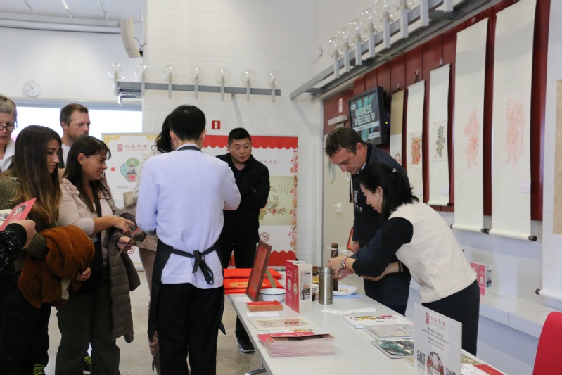 乔兰蓉老师为大家讲解了中国的木板年画的历史、制作工艺等,并邀请师生亲身体验年画的印刷。