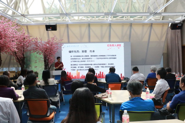 ——到红色育人课堂讲党课实地学。为贯彻学校主题教育领导小组办公室下发的“关于在‘不忘初心 牢记使命’主题教育中认真学习党史、新中国史的通知”精神,马克思主义学院党总支主题党日活动搬到了马克思主义学院与龙华烈士纪念馆共建的红色育人课堂。第三支部书记张国义老师作了“缅怀先烈 不忘初心”为题的党课,追溯了长眠在龙华烈士纪念馆的陈延年、陈乔年及“左联”五烈士的革命事迹与烈士的初心,激励每一位党员要继承革命烈士的遗志,牢记共产党员“为中国人民谋幸福,为中华民族谋复兴”的初心。