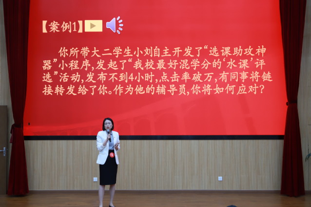 学工部与辅导员协会认真准备、精心选拔,各学院密切配合、大力支持,共有来自七个学院的九位辅导员经过遴选进入决赛。本次决赛共分为案例分析、谈心谈话和理论宣讲三个环节,旨在考察辅导员对马克思主义理论、习近平新时代中国特色社会主义思想、党的十九大精神等理论宣传阐述能力,分析、思考、研判、解决学生思政教育工作中的问题的能力,对相关政策、学生特征、学生成长成才规律的了解把握以及对学生的教育引导能力等。