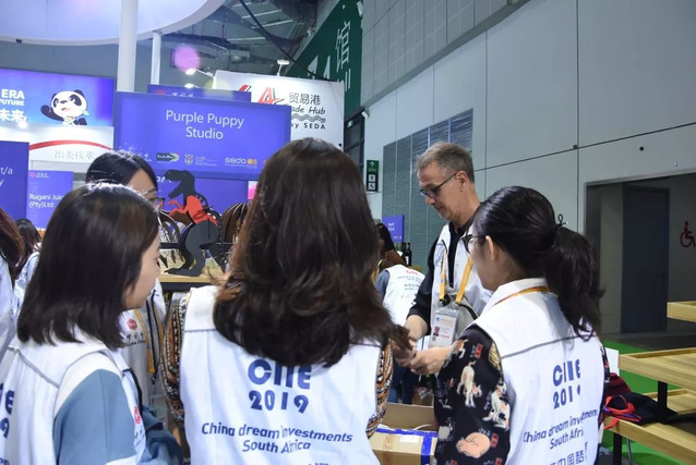在一番讲解后,同学们进行了合理的分工和安排,以积极的热情和满满的活力投入到当天的工作中。经过一整天紧张的劳动,南非商会展台夺目亮相,让过路人都忍不住要多看上几眼。