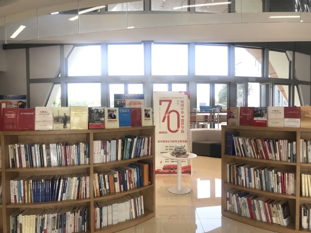 主题书架+专题书展,双线促学习:图书馆聚焦学习贯彻习近平新时代中国特色社会主义思想这一主线,结合主题教育和新中国成立70周年庆祝活动,设立主题书架,开展专题书展,通过“新中国成立70周年专题书展”和“习近平书单”,满足师生主题教育的学习需求,提升图书馆服务立德树人的能力。