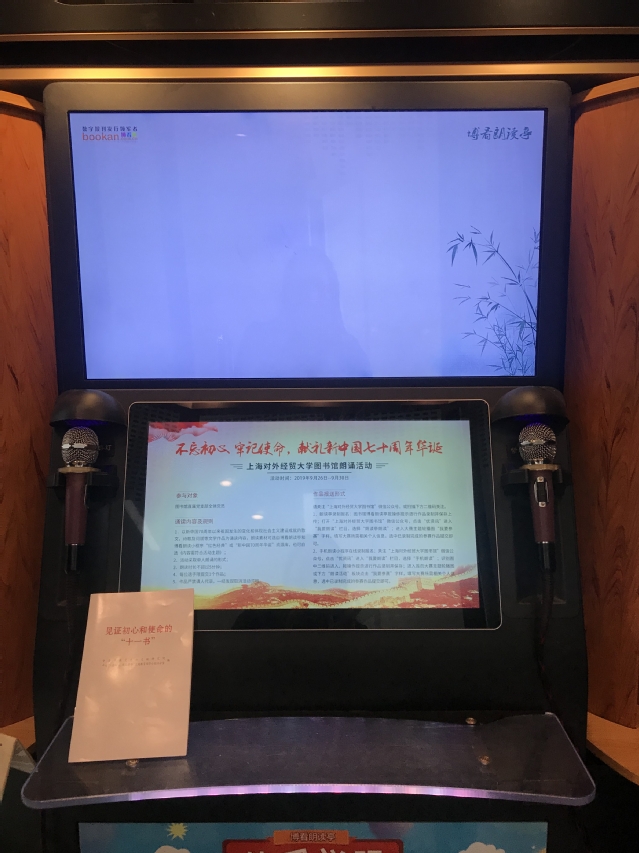 缅怀与传承”——红色经典诵读:为庆祝新中国成立70周年,图书馆发挥信息化优势,通过朗读亭新媒体方式开展了缅怀与传承”——红色经典诵读活动。在党员诵读环节,组织党员朗诵《见证初心和使命的“十一书”》等篇目,如:贺页朵的“宣誓书”、赵一曼的“示儿书”、左权的“决心书”等。感触共产党人以坚定的理想信念坚守初心、滋养初心、践行初心的感人故事,在诵读中体悟共产党人的信念与忠诚,初心与使命。