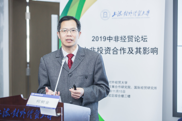 11月15日,由学校主办,国际发展合作研究院、国际经贸研究所承办的“一带一路与自贸区建设:2019中非经贸论坛”研讨会在古北校区举行。论坛开幕式由国际发展合作研究院院长黄梅波教授主持,科研处处长陈子雷、副处长赵蕾在开幕式上和闭幕式上讲话。来自中国社科院西亚非洲研究所、商务部对外贸易与经济合作研究院、南开大学、复旦大学、厦门大学、南京大学、西南财经大学、上海大学、上海师范大学、浙江师范大学、广东外语外贸大学等在非洲经济研究领域拥有卓越影响力的学者和从事中非投资合作实际业务的金融机构国际开发银行、中国进出口银行、中国出口信用保险公司、金砖国家新开发银行和企业代表出席本次会议并对中非投资及其影响的热点问题进行了深入探讨。