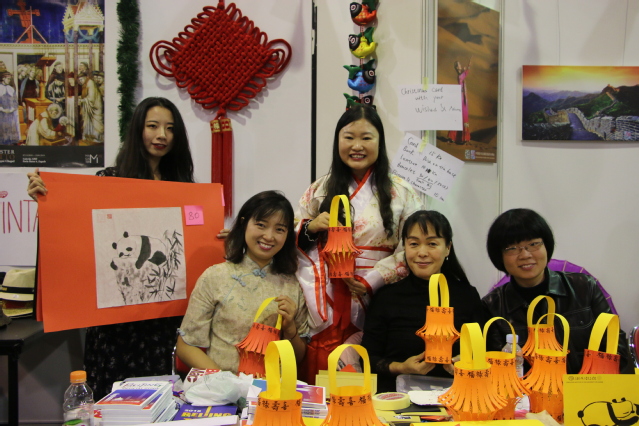 在前期义卖品的准备中,孔子学院教师齐上阵,精心设计并手工制作了圣诞和新年贺卡、手工灯笼、手链和多幅书画作品。这些充满中国文化元素和教师们爱心的物品在义卖当天引起了现场各国朋友的浓厚兴趣。圣诞和新年即将到来,因此,手工制作并现场书写中文祝福语的贺卡倍受青睐,许多当地朋友都想用这样一张特别的贺卡给家人和朋友送上节日祝福。