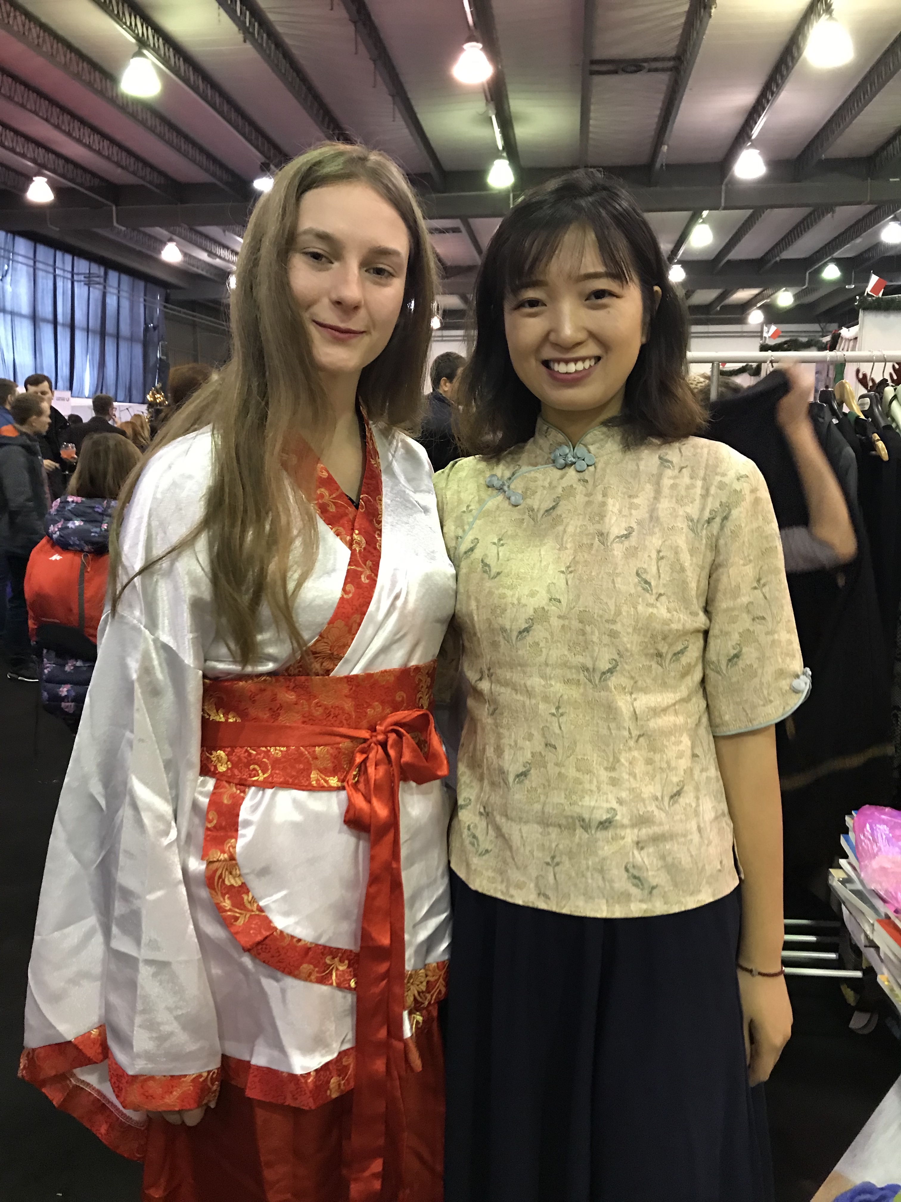 穿上汉服的朋友与孔院教师合影