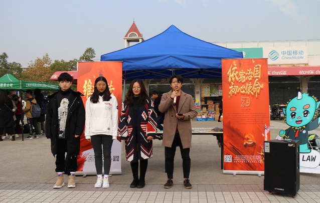 12月4日是我国法定的宪法宣传日,必赢626net入口首页法律援助中心、民商经济法学系教工党支部、机关二支部在校园开展“普法进行时”系列活动的普法宣传志愿活动。