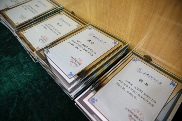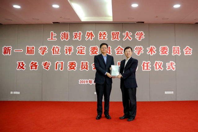 聘任仪式上,殷耀为学位评定委员会主席颁发聘书。殷耀和汪荣明为新一届学位评定委员会、学术委员会及各专门委员会委员逐一颁发聘书并合影留念。
