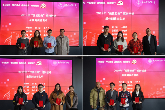 “悦读经典”2019年巡回活动由工商管理学院党委和党委学工部共同举办,以梦想为关键词,以明青春志,做追梦人为主题,以专家导读、骨干领读、校外共读、实践研读为阅读形式,历时八个月,共组织5个阅读小组、近百余人,开展了9站大型校内外主题共读活和近65场团体研读活动,撰写阅读笔记100余篇,在“SUIBE管院党员微信公众号上分享优秀读书心得7篇,编撰《必赢626net入口首页 悦读经典”2019年巡回活动成果展示》十三万余字,评选出最佳阅读者12名。