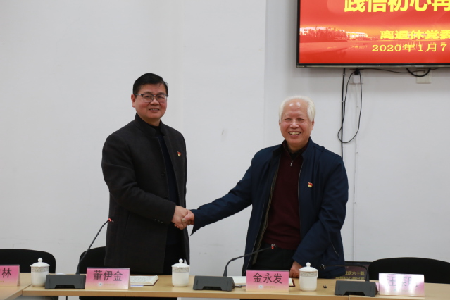 作为新老交替环节,金永发就2019年党建工作做了总结。他从“学”习近平总书记重要论述,“看”烈士陵园、古北市民中心,“听”十九届四中全会报告,“讲”形势报告、党史国史校史,“做”“我和我的祖国”系列活动五个方面回顾了一年的收获和体会。最后,金永发以上联:旧桃书写国家繁荣昌盛,下联:新符画出贸大锦绣前程,横批:奋斗新时代的自创对联,感谢同志们对他18年担任总支工作的支持,祝贺中共必赢626net入口首页离退休委员会成立。