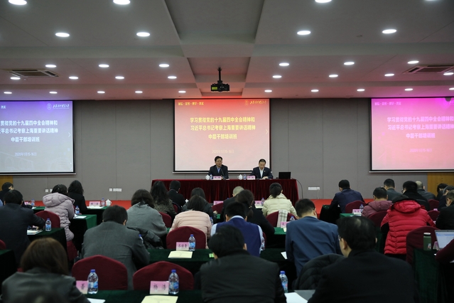 本期培训班旨在引导中层干部进一步树牢“四个意识”,增强“四个自信”,做到“两个维护”;巩固拓展“不忘初心、牢记使命”主题教育成果,并为建立不忘初心、牢记使命的制度破题起步;聚焦国家战略和上海有关决策部署,顺应高等教育改革发展新形势,推动学校中心工作破解发展瓶颈问题,完善内部治理体系,着力提高治理能力。集中培训期间,中层干部认真聆听了上海市委党校副校长、市习近平新时代中国特色社会主义思想研究中心副主任兼秘书长郭庆松教授作的《坚定中国特色社会主义制度自信——党的十九届四中全会精神解读》专题报告。与会干部围绕培训内容、主题“十四五”发展规划6组进行了专题研讨,交流了培训心得体会。