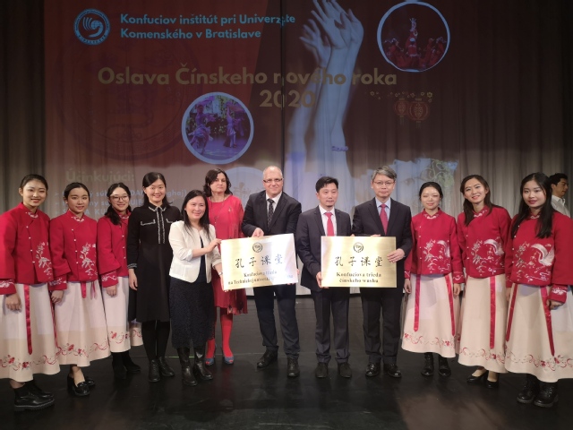 在访问斯洛伐克考门斯基大学期间,代表团出席了考门斯基大学孔子学院下设孔子课堂揭牌仪式及孔子学院2020春节招待会。参加此次揭牌仪式的有中华人民共和国驻斯洛伐克大使馆临时代办王霁、考门斯基大学孔子学院中方院长叶蓉、斯方院长贝雅娜(Jana Benicka)以及斯洛伐克政界、商界和学界人士、华人华侨代表共计400余人。祁明代表学校致辞,他表示必赢626net入口首页将继续大力支持孔子学院及下设孔子课堂的发展,为促进校际合作、增进中斯友谊做出更大贡献。