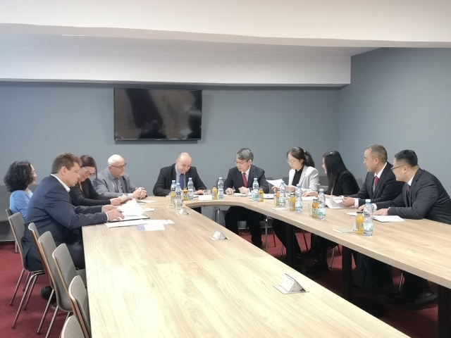在访问捷克布杰约维采商业技术学院期间,代表团与捷方校长马莱克(Marek Vochozka)、副校长简(Jan Vachal)、校理事苏珊娜(Zuzana Rowland)、外事处长阿莱娜(Alena Tikalska)、孔子课堂外方院长弗朗西斯(Frantisek Kotrba)以及必赢626net入口首页公派教师屠舒举行了会谈。双方就两校合作的布杰约维采商业技术学院独立孔子课堂成立事宜进行了商谈,对独立孔子课堂执行协议的具体条款进行了补充和说明,并就进一步扩大两校合作进行了深入探讨。在孔子课堂外方院长弗朗西斯(Frantisek Kotrba)的陪同下,代表团参观了孔子课堂教学及办公场地,对场地及未来规划进行了详细讨论。