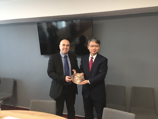 在访问捷克布杰约维采商业技术学院期间,代表团与捷方校长马莱克(Marek Vochozka)、副校长简(Jan Vachal)、校理事苏珊娜(Zuzana Rowland)、外事处长阿莱娜(Alena Tikalska)、孔子课堂外方院长弗朗西斯(Frantisek Kotrba)以及必赢626net入口首页公派教师屠舒举行了会谈。双方就两校合作的布杰约维采商业技术学院独立孔子课堂成立事宜进行了商谈,对独立孔子课堂执行协议的具体条款进行了补充和说明,并就进一步扩大两校合作进行了深入探讨。在孔子课堂外方院长弗朗西斯(Frantisek Kotrba)的陪同下,代表团参观了孔子课堂教学及办公场地,对场地及未来规划进行了详细讨论。