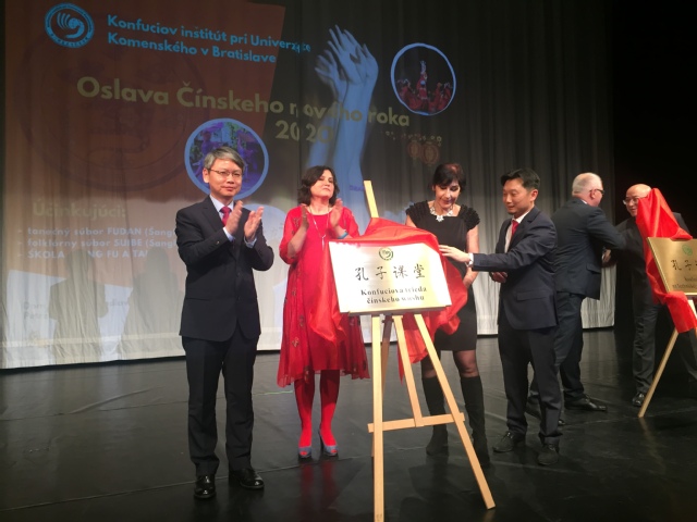 在访问斯洛伐克考门斯基大学期间,代表团出席了考门斯基大学孔子学院下设孔子课堂揭牌仪式及孔子学院2020春节招待会。参加此次揭牌仪式的有中华人民共和国驻斯洛伐克大使馆临时代办王霁、考门斯基大学孔子学院中方院长叶蓉、斯方院长贝雅娜(Jana Benicka)以及斯洛伐克政界、商界和学界人士、华人华侨代表共计400余人。祁明代表学校致辞,他表示必赢626net入口首页将继续大力支持孔子学院及下设孔子课堂的发展,为促进校际合作、增进中斯友谊做出更大贡献。