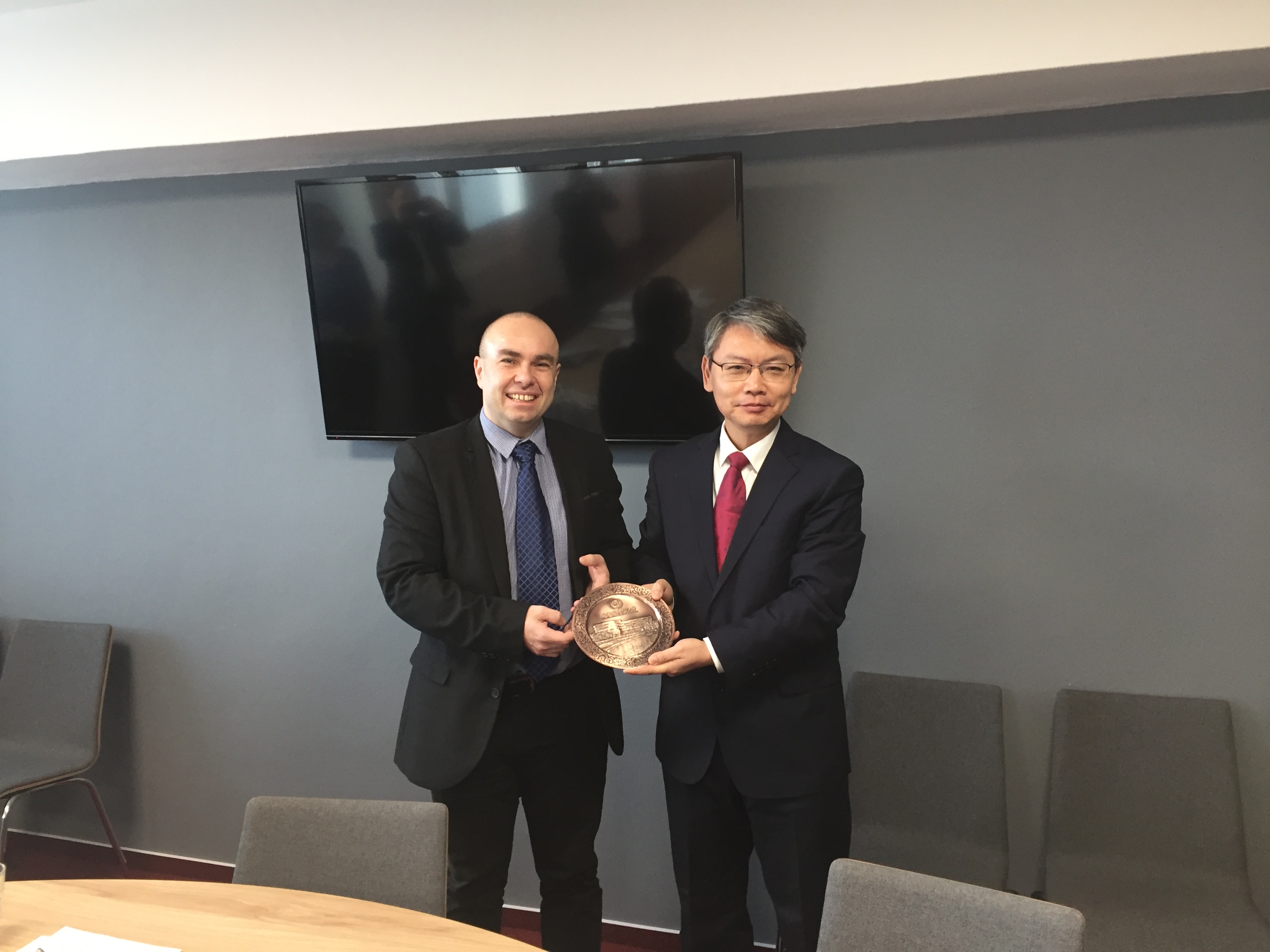 在访问捷克布杰约维采商业技术学院期间,代表团与捷方校长马莱克(Marek Vochozka)、副校长简(Jan Vachal)、校理事苏珊娜(Zuzana Rowland)、外事处长阿莱娜(Alena Tikalska)、孔子课堂外方院长弗朗西斯(Frantisek Kotrba)以及必赢626net入口首页公派教师屠舒举行了会谈。双方就两校合作的布杰约维采商业技术学院独立孔子课堂成立事宜进行了商谈,对独立孔子课堂执行协议的具体条款进行了补充和说明,并就进一步扩大两校合作进行了深入探讨。在孔子课堂外方院长弗朗西斯(Frantisek Kotrba)的陪同下,代表团参观了孔子课堂教学及办公场地,对场地及未来规划进行了详细讨论。