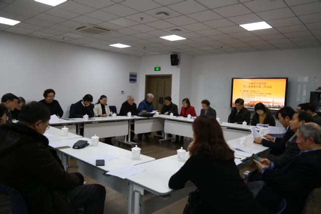 在全体会议之前,上海市日本学会第八届理事会举行了第二次会议。会议审议学会2019年工作报告及新年工作设想、拟表彰的学会专家学者名单、增聘顾问名单、新申请入会者名单,并征求对新一届理事会工作的意见与建议。
