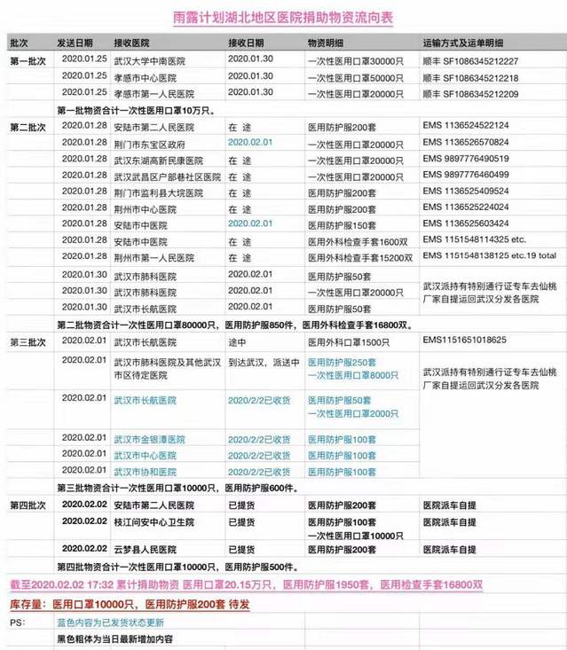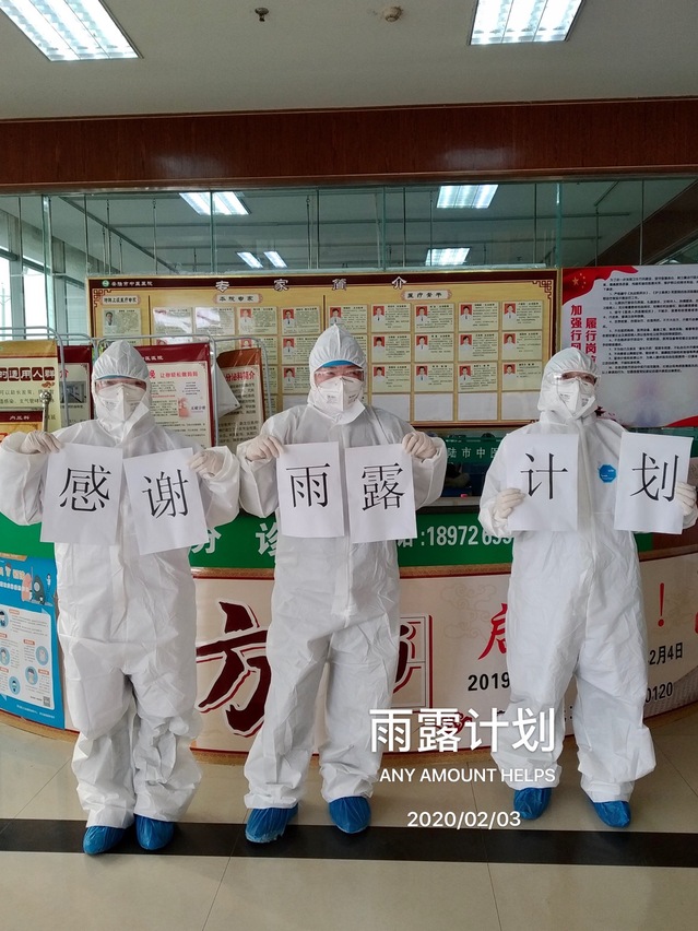 双学位03级校友杨鹏、张林林以及他们的两个朋友分别来自河南(豫)和山东(鲁),一起组成了“雨露计划”的纯公益团体,为社会奉献爱心并尽绵薄之力。截至2月2日下午,“雨露计划”通过募集资金、自行联系物资生产厂家、精准定向捐助医院的方式,累计向急缺物资的湖北各医院捐助四批次物资:第一批次,10万只一次性医疗用口罩;第二批次,6万只一次性医疗用口罩,850件医疗用防护服,16800双外科检查手套;第三批次,1万只一次性医疗用口罩,600件医疗用防护服;第四批次,1万只一次性医疗用口罩,500件医疗用防护服。目前捐赠工作正在持续进行中。值得一提的是,当他们通过校友会了解到学校防疫工作物资比较紧张,杨鹏、张林林校友还专门向学校捐赠了一次性医疗用口罩2500只。