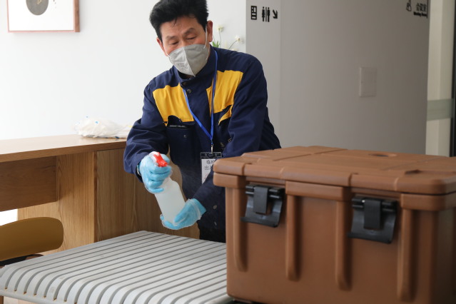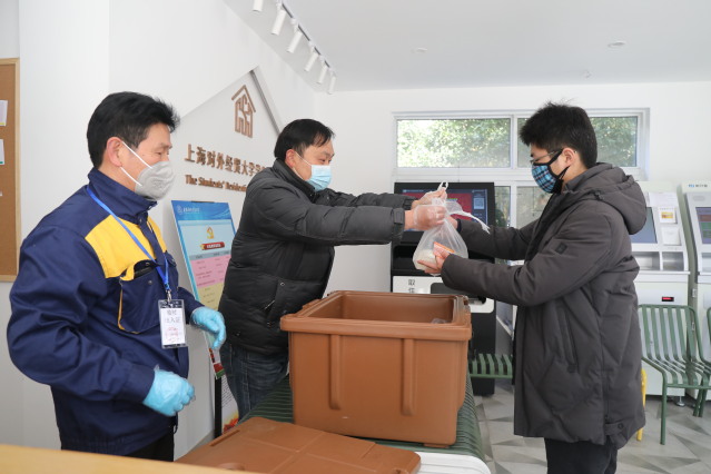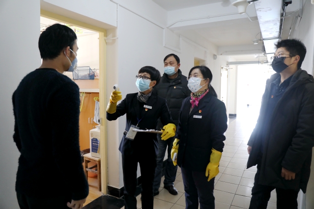 古北校区学生公寓主要居住着寒假留校的留学生,物业工作人员春节期间放弃休息,坚守自己的工作岗位,尽力做好学生的服务管理工作,遵循统一部署、趋同管理的原则,对居住于学生公寓的留学生一视同仁,与关心中国学生一样,叮嘱留学生减少外出和与其他人接触,每天为留学生测量体温,尽心尽责做好相关工作。宿管人员认真做好跟踪记录,对每位学生的动态了然于胸。古北校区食堂克服工作力量不足的困难,保障学生的就餐服务。