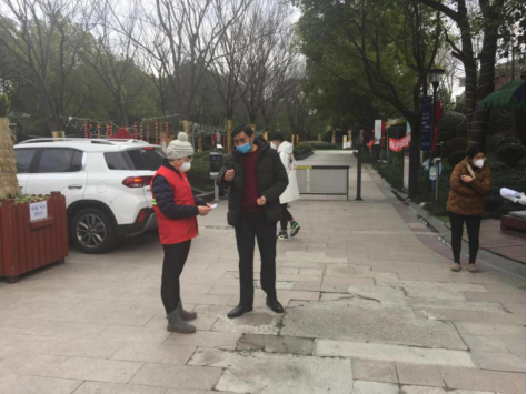 民革松江区委副主委宋彩萍接到政协泗泾镇联络组关于“呼吁政协委员确保自身安全,参与泗泾社区各项防控工作”的通知后,立即申请参加向阳桥社区“泗泾平安志愿者”工作。她主要负责佘山东郡防控监督工作,工作地点在小区门岗。每天非固定时间,她均到门岗检查一次,在调研监督中发现问题,及时告知相关负责人员纠正,并针对性宣传防控疫情相关知识与信息。