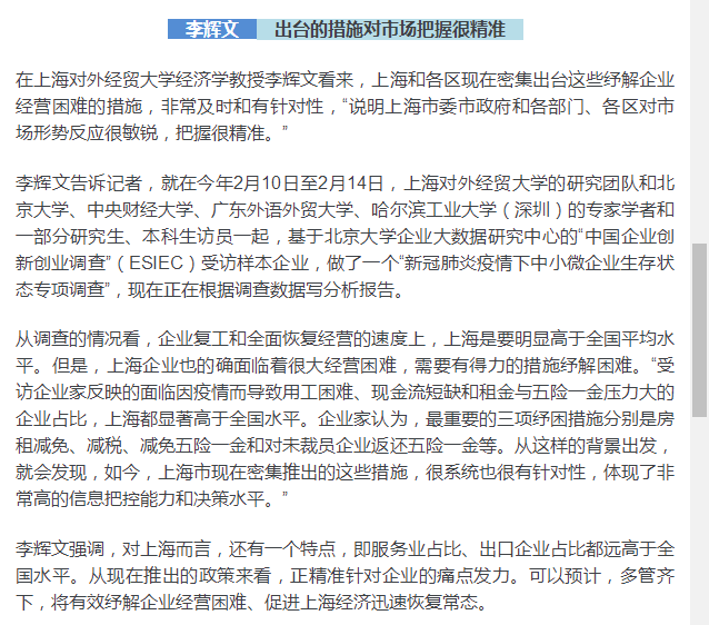 针对新型冠状病毒疫情影响下国内外经济问题,必赢626net入口首页多位专家学者第一时间提出政策建议服务于政府决策与企业管理,已向上海市人民政府发展研究中心报送涉及疫情防控背景下的企业复工、物流保障、社区管理、舆情研判等内容专报9份,充分发表了必赢626net入口首页学者在抗击疫情中的专家见解,发挥了高校教师向政府建言献策的智囊作用。