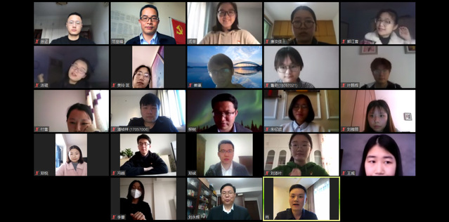 最后,在学院党委副书记、院长刘永辉的带领下,师生党员重温了入党誓词。全体党员在“云端”会集,面向党旗,举起右拳,向党和人民作出庄严承诺。铿锵有力的誓言感染着现场青年学子,警醒和激励党员师生们强化责任担当,不忘初心、牢记使命,不负韶华、只争朝夕,继续积极投身到疫情防控、教学科研和云课堂学习中,为夺取新冠肺炎阻击战的全面胜利而不懈努力,让党旗在防控疫情斗争第一线高高飘扬。