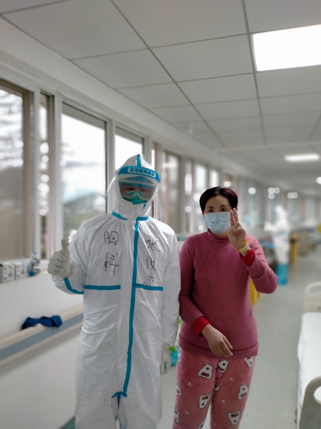 让张俊杰印象特别深刻的是有一名患者在重症期间一度想要纸笔写遗书,不愿配合治疗。在他的耐心劝说和安慰下,这位患者慢慢配合治疗,并最终康复出院。一天张俊杰在微信朋友圈中看到了这名患者出院后与家人团聚的合影,觉得他做的事情改变了这名患者整个家庭,更感到作为一名医务人员承担着救死扶伤的神圣职责和使命。