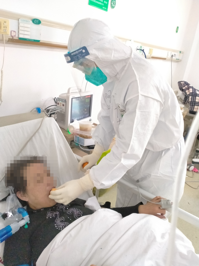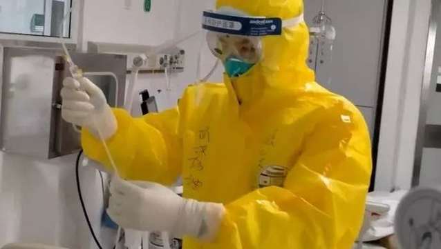 金银潭医院感染病区分为轻症区和重症区,经过一天紧张的培训,张俊杰被分配到重症区开展医护工作。工作初期,张俊杰一人需要护理6位重症病人,每天工作时间9个小时。工作中,张俊杰不仅要承担给患者吃药、打针、使用医疗设备等护理工作,还要同医生共同研究治疗方案、拟定病房管理制度,甚至还要完成给患者刷牙、处理大小便等护理工作。