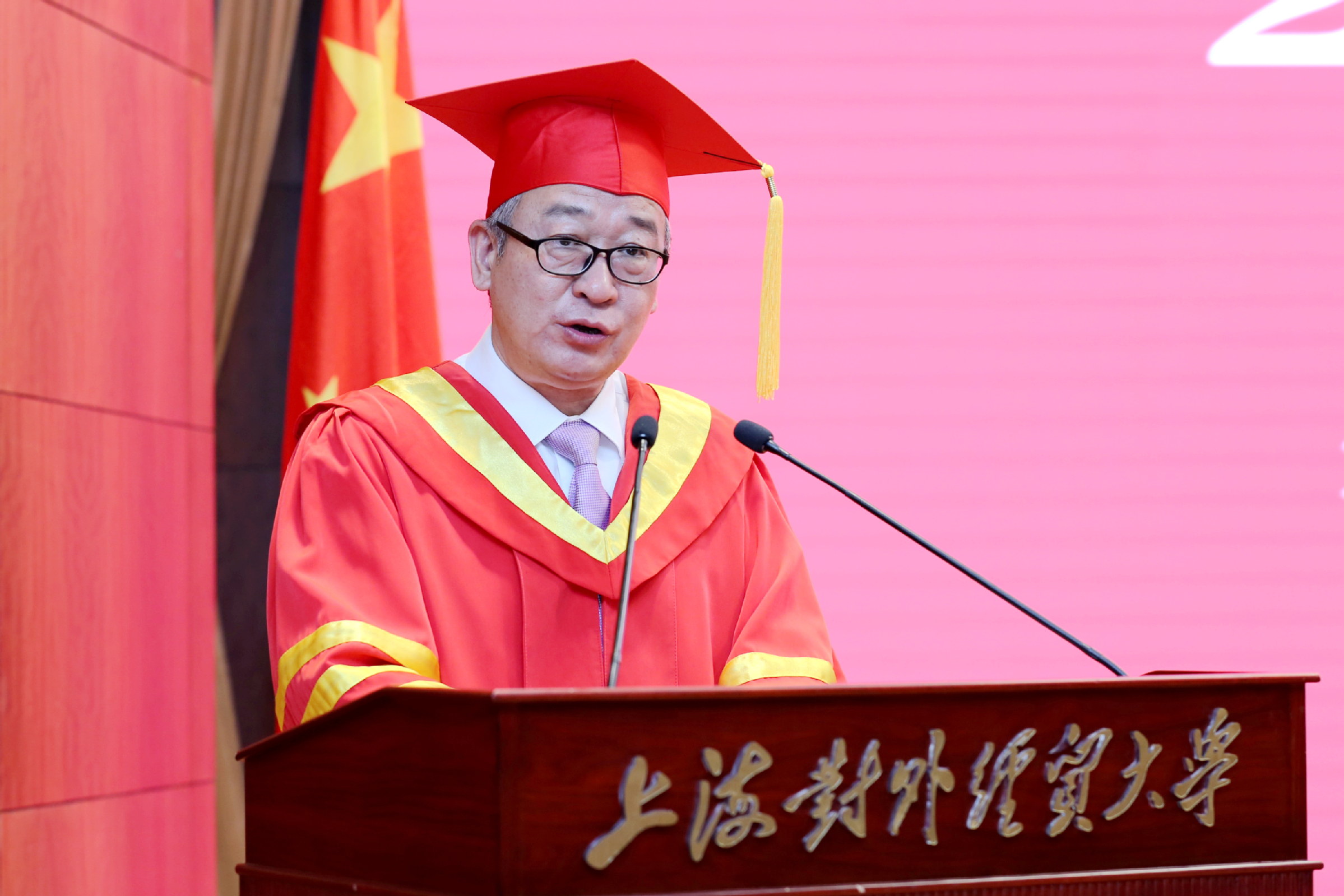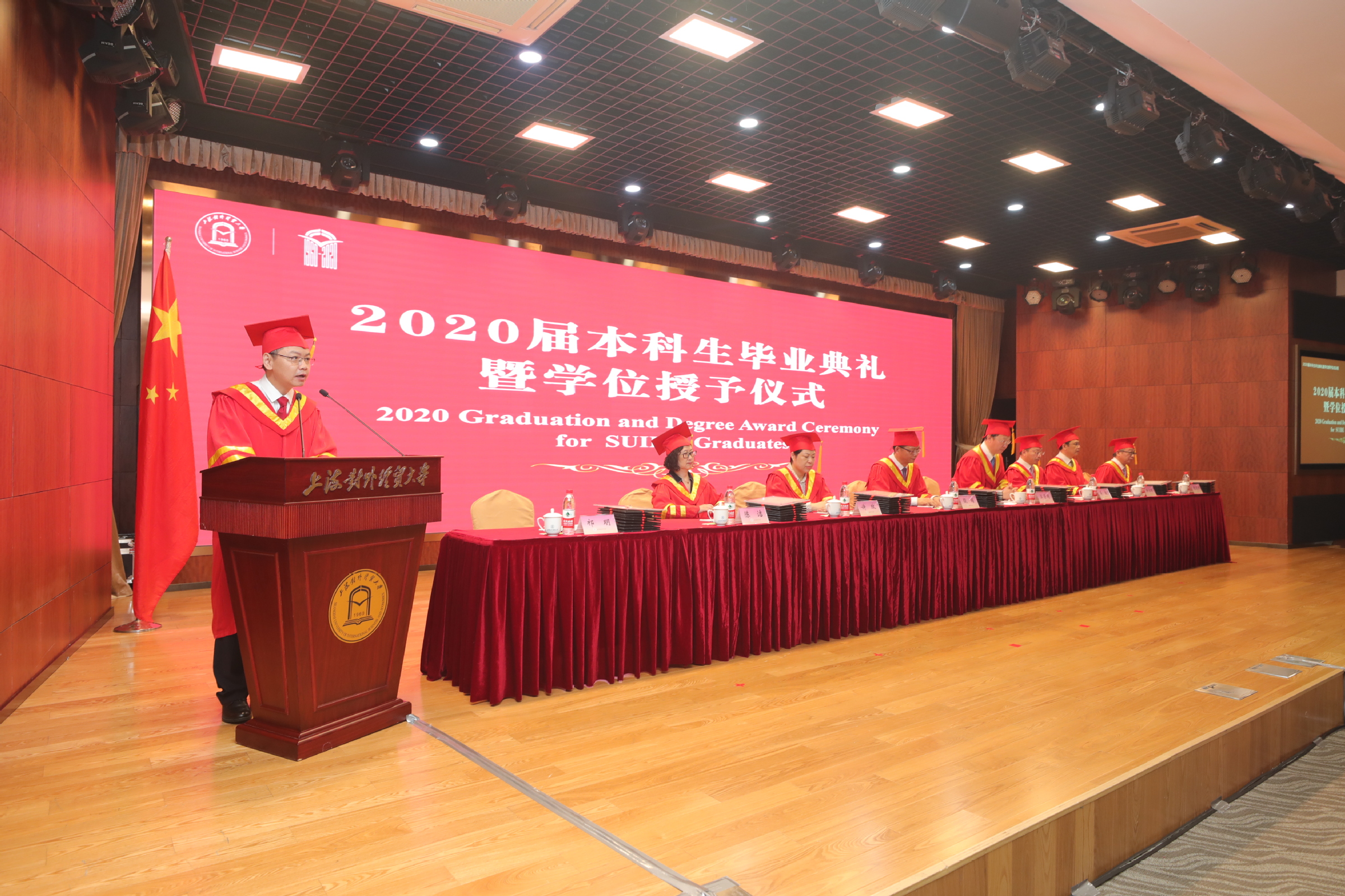 在毕业生离开校园,梦想启航之际,校长汪荣明以《直面时代,起而行之》为题为毕业生上了最后一课。他首先代表学校向全体毕业生表示热烈祝贺。他指出,2020届毕业生经历了前所未有的考验,用这种特殊的方式举行毕业典礼,虽有遗憾但意义深远,不平凡的2020年告诉了学生三个深刻的道理:世界上唯一确定的就是不确定;面对困难,唯强者自强;国是千万家、有国才有家。根据这三个道理,汪校长向毕业生提出三点殷切的希望:一是面对不确定,要学会以静生慧;二是面对风雨,要保持翱翔的姿态;三是面对纷繁世界,要树牢家国情怀。在毕业生即将从母校再出发时刻,汪校长鼓励毕业生,母校是世界首批、国内唯一的WTO教席院校,并于去年在国际激烈竞争中夺得WTO亚太培训中心资格。目前,母校正站在新一轮腾飞的关口,作为高等教育星空中一颗闪亮的星星,将照亮毕业生前行的道路。最后,汪校长祝福全体毕业生在今后的征途上前程似锦、鹏程万里,希望大家常回家看看。