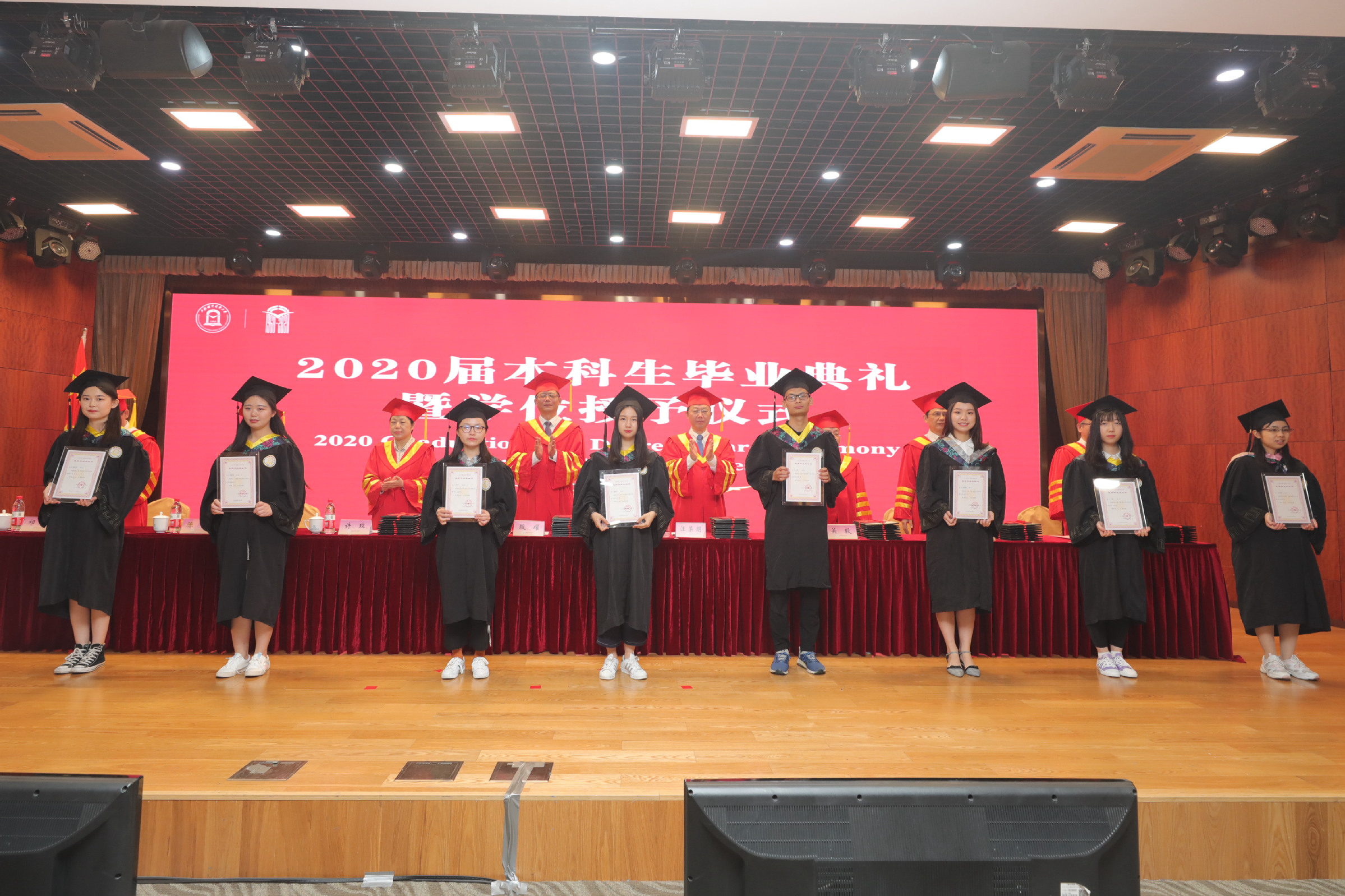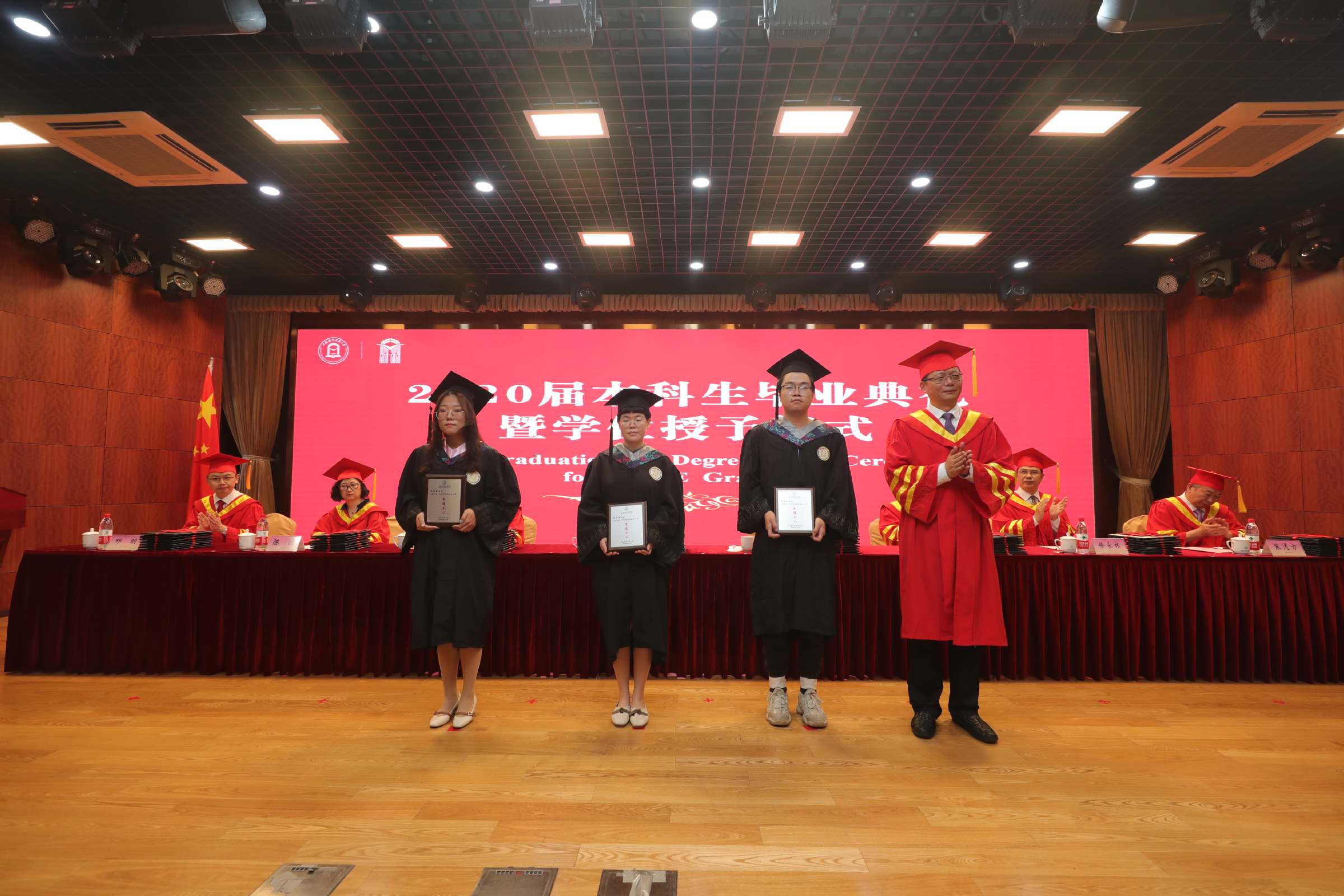 2020届本科毕业生勤奋学习、锐意进取,充分展现了当代大学生良好的精神风貌,涌现出一批品学兼优的优秀毕业生。徐永林宣读获得学士学位和荣誉学士学位名单,张道方宣读上海市和学校优秀毕业生表彰决定。随后,校领导分别向获得荣誉学士学位毕业生、上海市和学校优秀毕业生代表颁发了荣誉证书。
