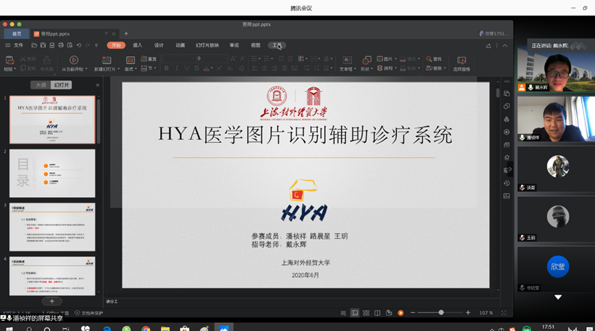 HYA医疗辅助诊疗系统 | 潘祯祥 路晨星 王玥 | 戴永辉 | 人工智能应用 | 一等奖 |