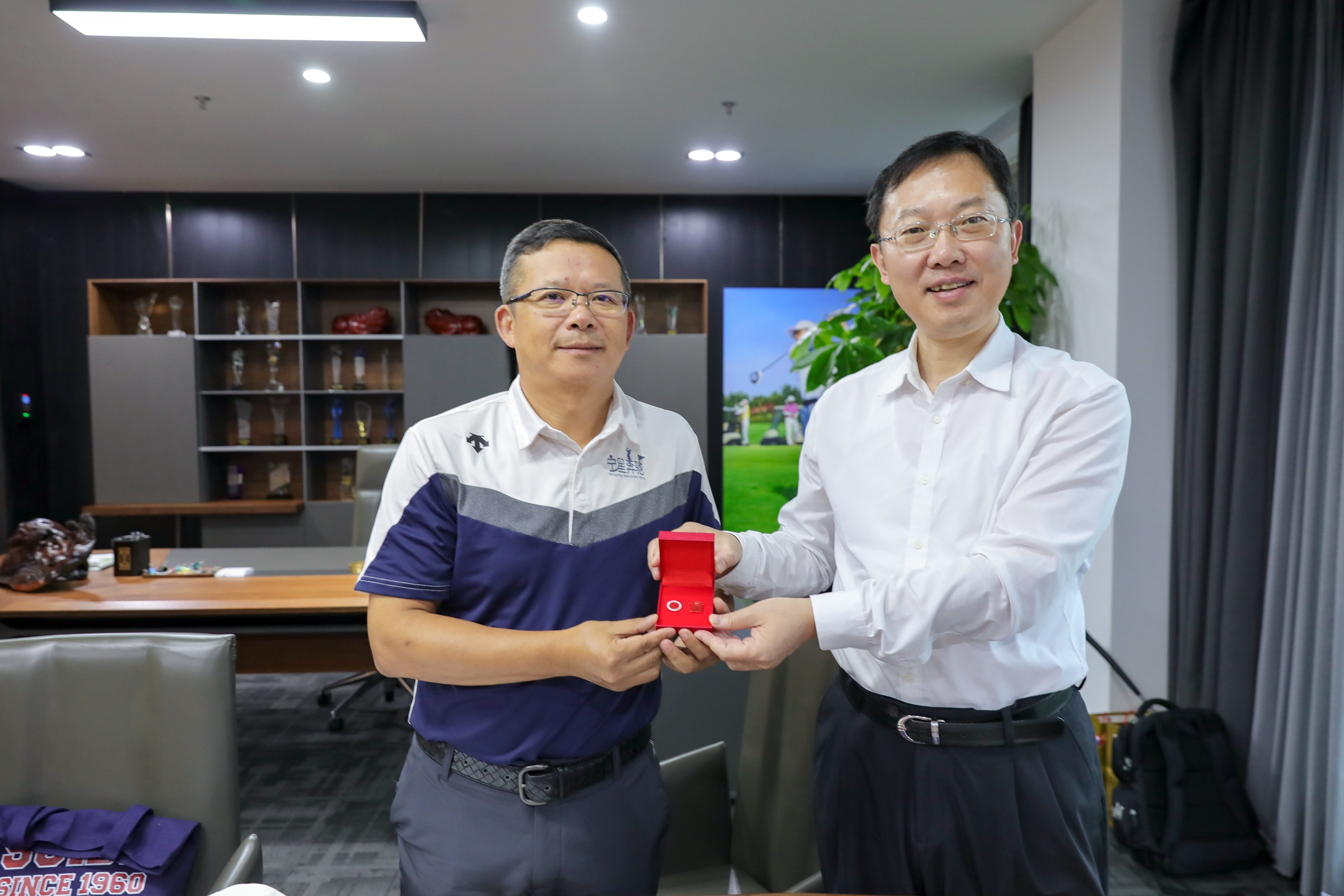 过程中,汪荣明从人才培养、师资建设、科学研究、合作交流等多方面向陈利民校友介绍了近年来学校的发展情况、取得的办学成果以及学校60周年校庆的筹备情况。他对校友给予学校发展的关心关注表示感谢,向校友赠送了60周年校庆徽章,并表示校友是母校的宝贵财富,欢迎陈利民校友常回家看看。