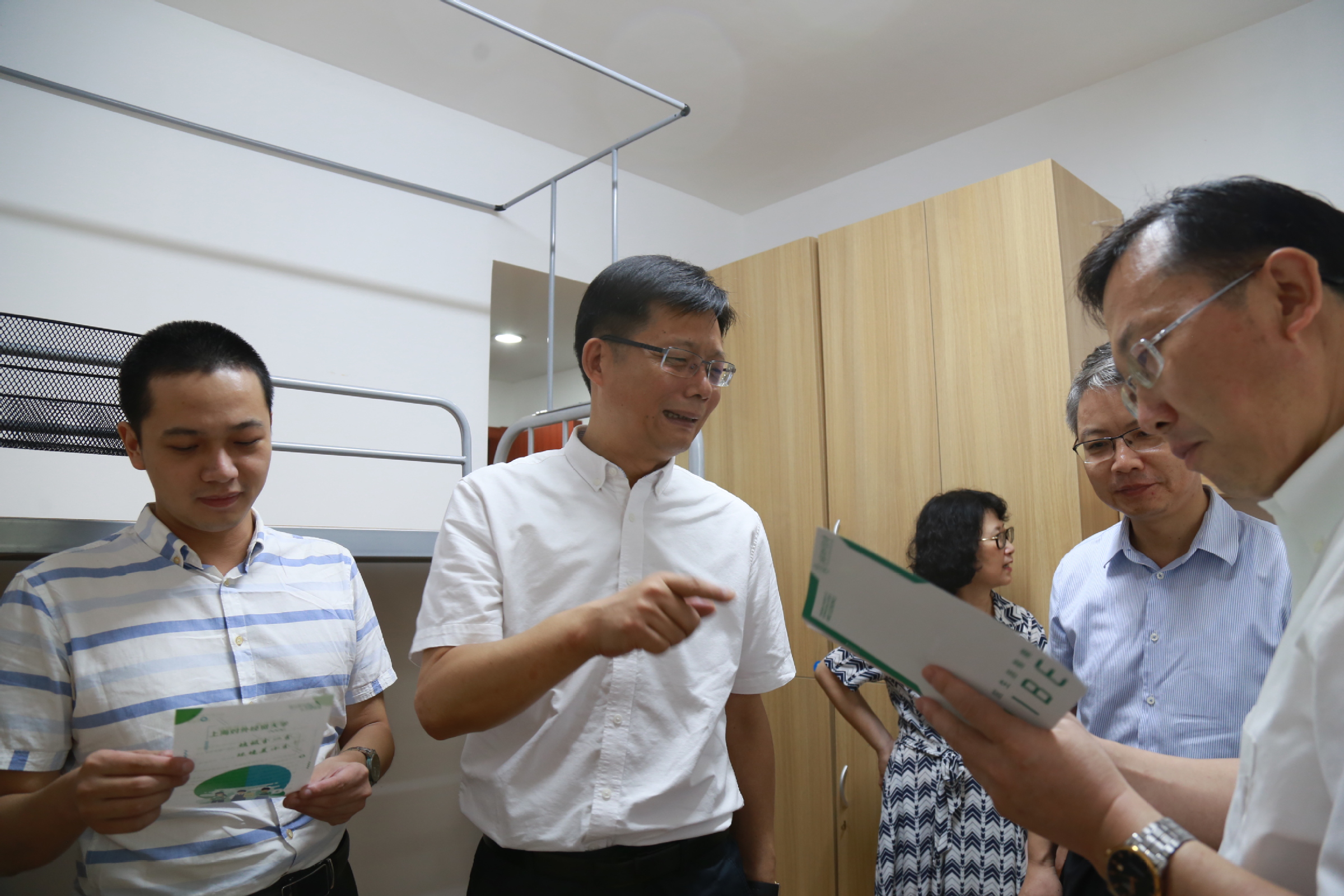 校领导一行来到学生事务中心、综合楼、食堂等场所,查看了古北校区整体环境和暑期各类工程完成情况,实地了解相关工作准备情况,详细询问宿舍安排、学生入住体验、疫情防控措施、师生就餐方案和伙食准备等情况,要求相关部门细化校内应急处置方案,加强对师生关心关爱,加强正面宣传引导,推出更多暖人心的举措,全面做好学生入住准备工作,为师生营造温馨的氛围。校领导来到宿舍,亲切看望了入住的学生。