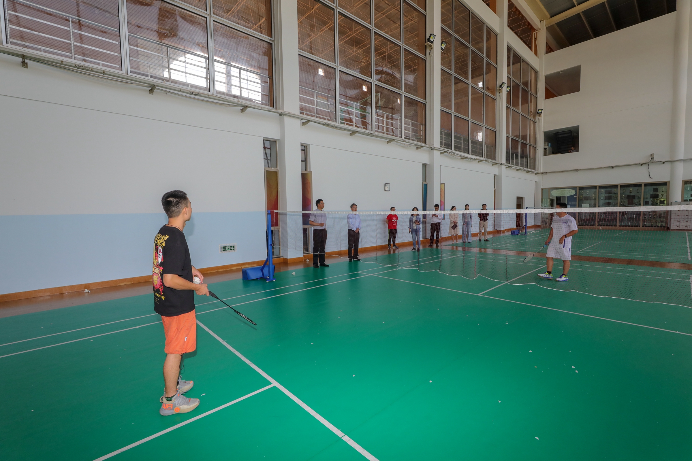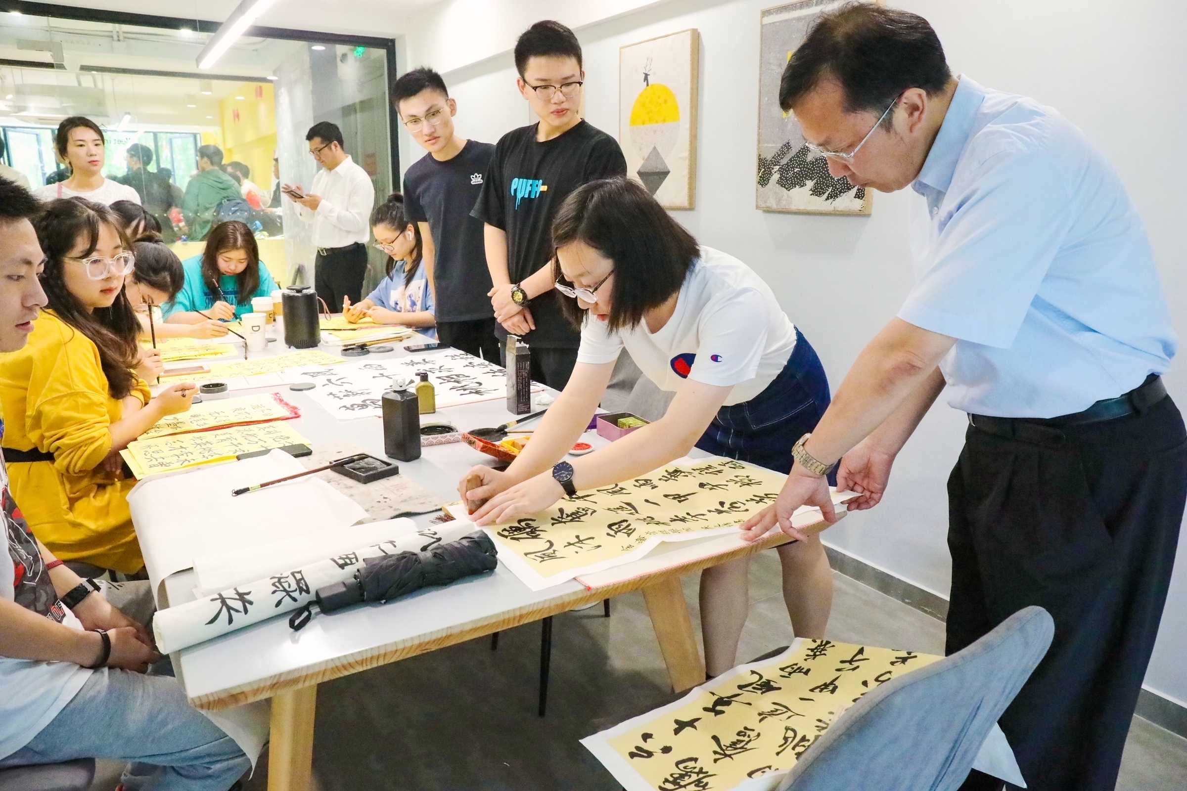 校领导来到学生社区与留校学生进行了亲切的交流,关心同学们假期生活情况,向同学们致以节日的问候。在交流的同时,校领导也饶有兴趣地和同学们一同参与了“四史”和校史知识大闯关、校庆主题油画创作等趣味挑战,体验了学生社区茶艺、书法等中国传统文化技艺,观看了爱国电影、师生足球赛,参加了新生班会等活动。