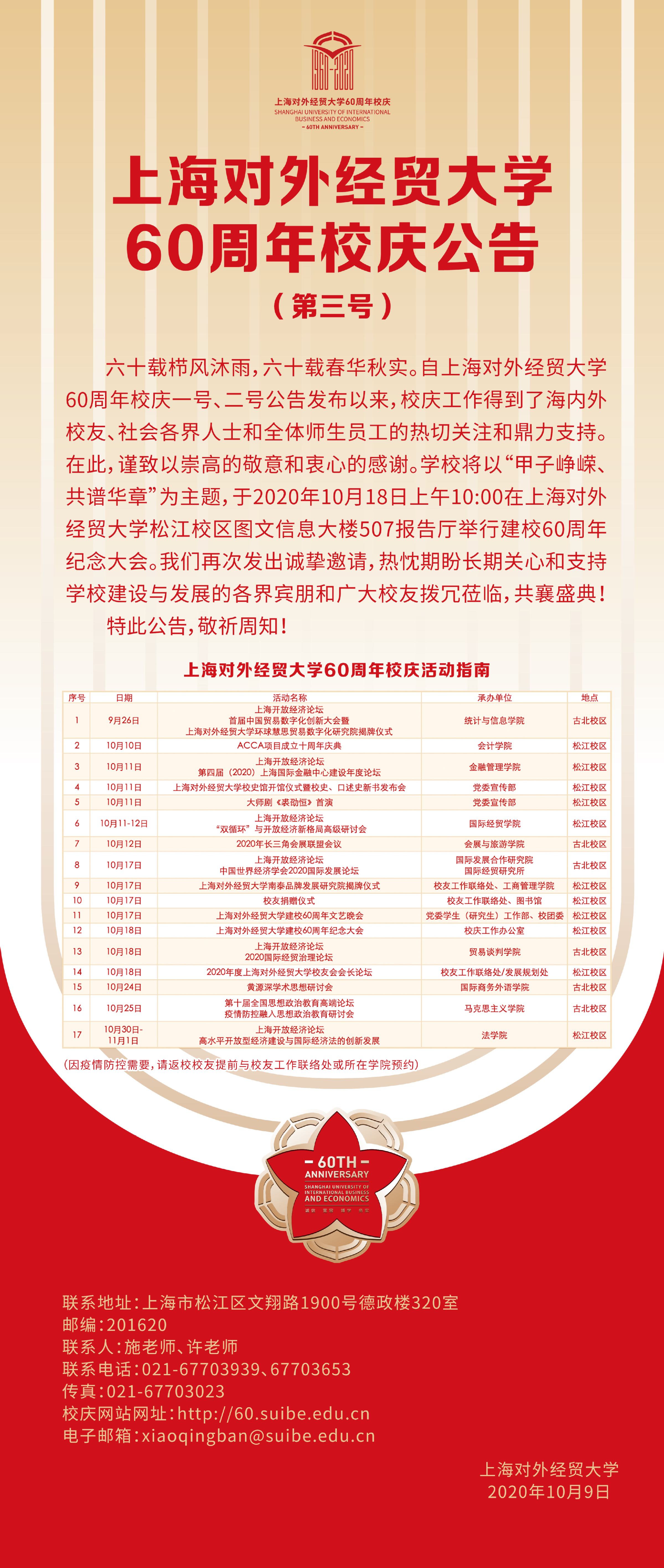 SUIBE 60 | 必赢626net入口首页60周年校庆公告(第三号)发布