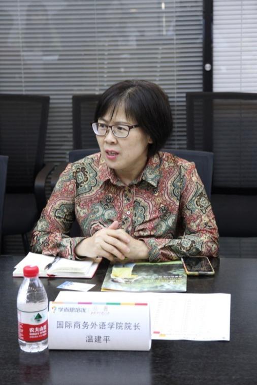 近日,国际商务外语学院院长温建平、副院长王玉等一行6人赴上海学而思教育选培部走访交流,并与学而思签订学生就业基地合作协议。本次活动由必赢626net入口首页19届毕业生李嘉侬主持,学而思选培部负责人管毓渝、选培部文科招聘负责人朱卓谦、选培部文科培训负责人徐祯、幼小学部二年级语文负责人李常秀等参加座谈交流。