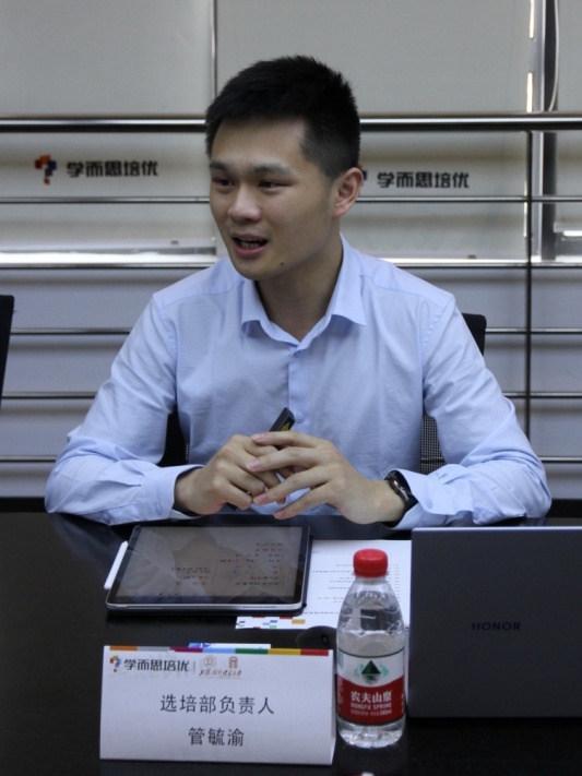 管毓渝介绍好学而思的品牌发展历史、智慧教育理念、企业愿景、企业文化、社会使命等内容。他说,学而思教育理念新颖,重视情感教育,致力于打造全新的科技教育平台,本着教育初心更希望职员有着良好的职业发展和自身成长。