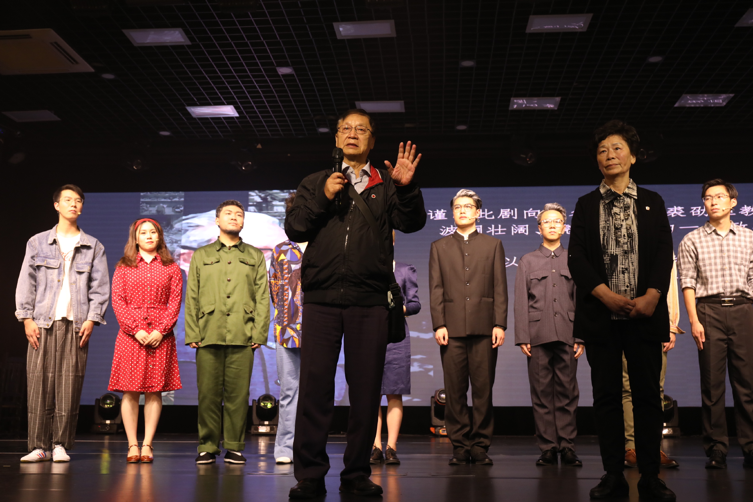 演出结束后,周汉民、裘寿一、裘斌应邀上台与观众们分享了大师剧的观演感受。周汉民深情谈到,作为裘劭恒教授的弟子,追随先生近40年,裘教授不仅是他的恩师,更是业师和人师。在纪念抗日战争和反法西斯战争胜利75周年、母校60周年校庆之际,母校以大师剧《裘劭恒》首演来追根溯源、弘扬正气,激发师生爱国热情,具有特殊的纪念意义。周汉民强调,裘劭恒教授一生的经历和所做的贡献足以彪炳史册,他为人刚正、为学严谨、处世淡泊的精神值得上经贸大师生学习和传承。裘寿一、裘斌向学校对大师剧的重视以及全体演职人员的精心排演表示感谢,希望上经贸大人牢记学校发展历史,继承和发扬裘劭恒教授等老一辈知识分子为祖国无私奉献的精神,在新时代为祖国发展做出更大的贡献。