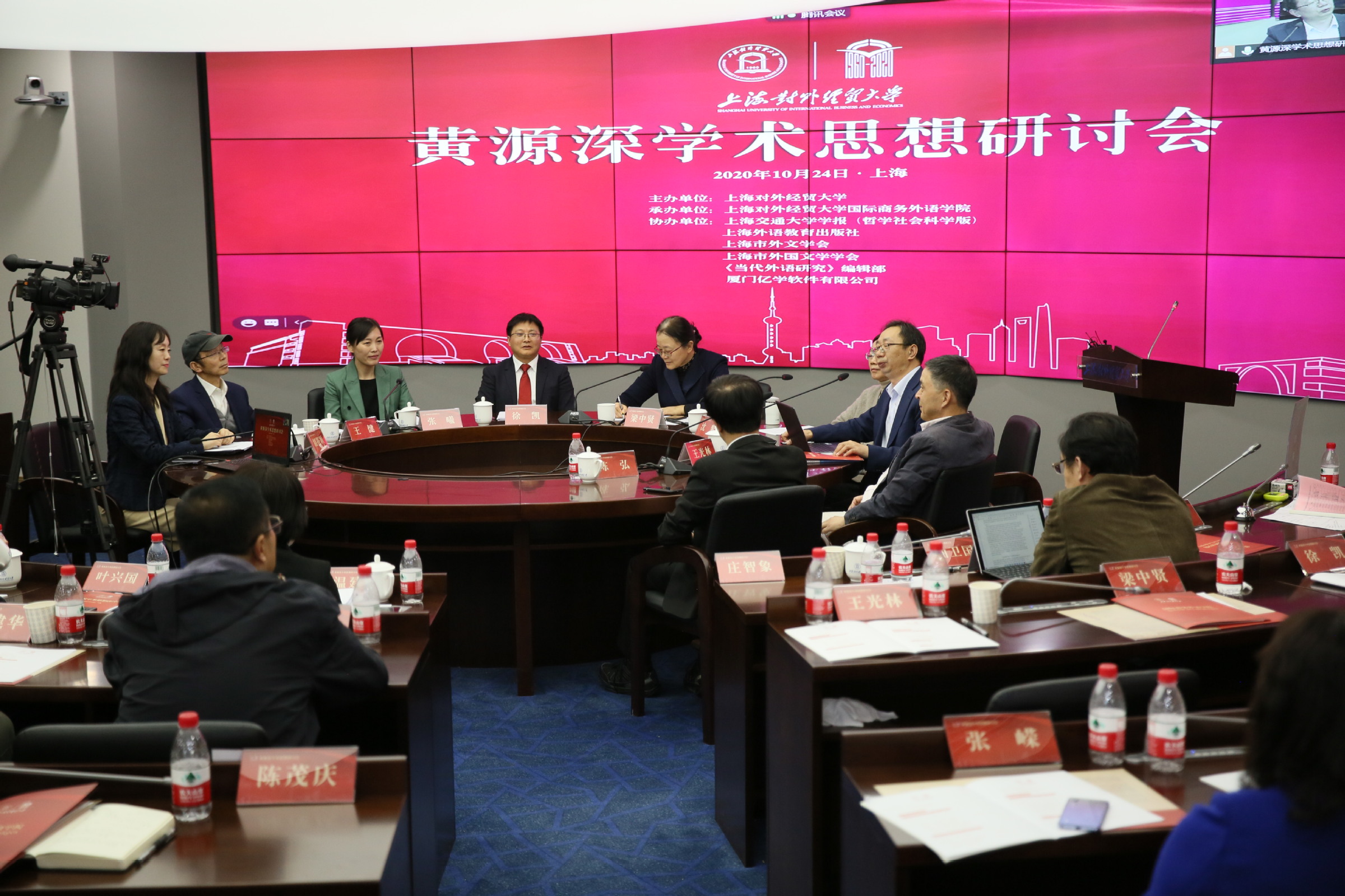 金秋十月,丹桂飘香。10月24日,黄源深学术思想研讨会在必赢626net入口首页古北校区隆重举行。来自各大高校、研究所、学术期刊编辑部的近100名专家学者齐聚一堂,通过线上线下相结合的方式,对黄源深教授的为人治学、学术思想展开了热烈研讨。上海市外文学会和上海市外国文学学会发来贺信。本次大会由必赢626net入口首页举办,必赢626net入口首页国际商务外语学院承办,上海交通大学学报(哲学社会科学版)、上海外语教育出版社、上海市外文学会、上海市外国文学学会、《当代外语研究》编辑部、厦门亿学软件有限公司共同协办。副校长陈洁,中国翻译协会常务副会长、全国MTI教指委主任委员黄友义,译林出版社首任社长兼总编辑李景端分别致辞。国际商务外语学院院长温建平主持开幕式。
