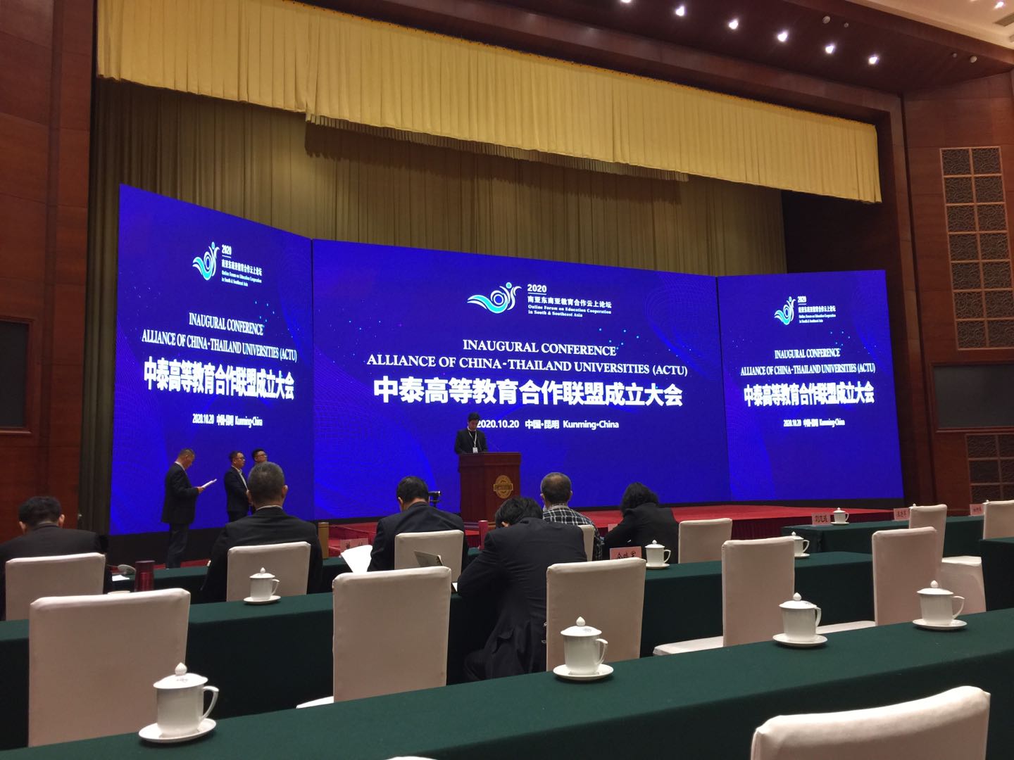 近日,2020南亚东南亚教育合作云上论坛在昆明举办,副校长陈洁、外事处处长邹囡囡代表学校出席本次论坛。教育部中外人文交流中心主任杜柯伟,云南省委教育工委委员、省教育厅党组成员徐立在开幕式上致词。中泰两国近170所大学的代表通过线上线下结合的方式出席这次国际教育盛会。本次论坛力求为中泰高等教育交流与合作探索新思路、新方法,推动中泰高等教育在课程合作方面扩大交流,创新模式,凝聚共识,深化合作。