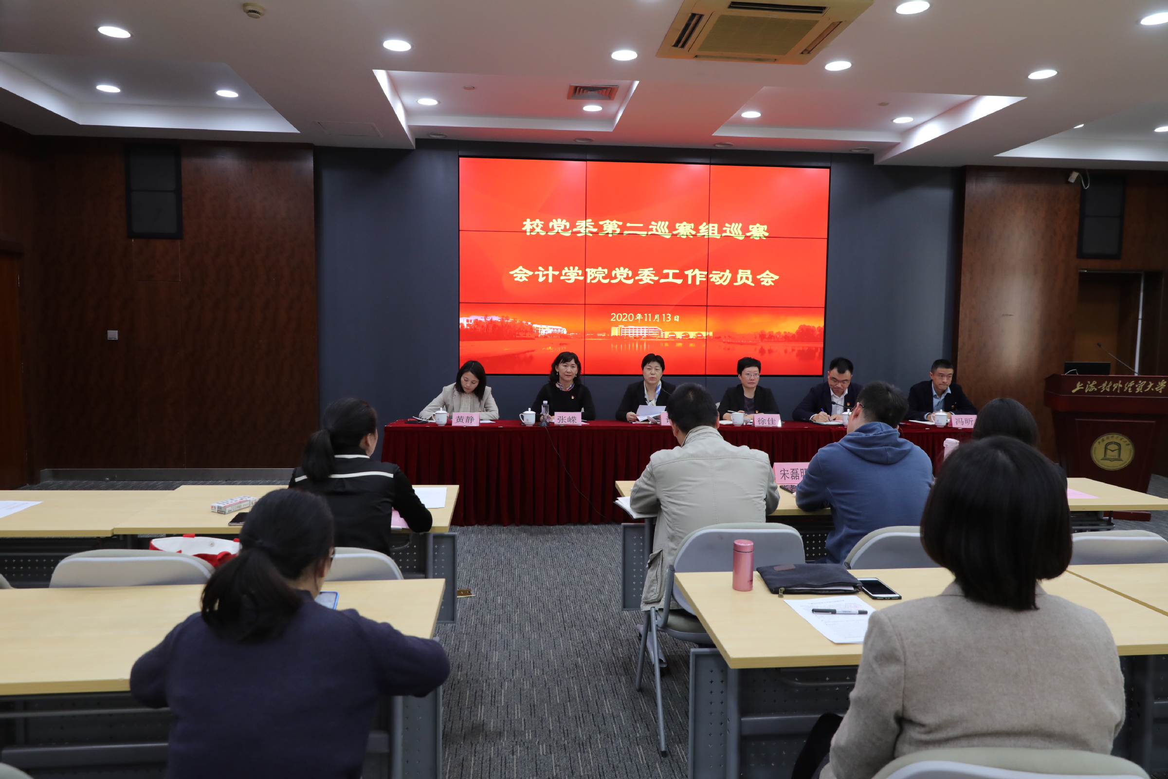 11月12日至13日,被巡察单位分别召开巡察工作动员会,三个巡察组正式进驻,第二轮校内巡察工作全面展开。学校巡察工作领导小组副组长、党委副书记、纪委书记许玫作动员讲话,巡察组组长作工作部署,巡察办和巡察组全体成员出席会议。法学院、会计学院班子成员,学院教师和学生代表,以及后勤综合管理处全体员工分别参加会议。