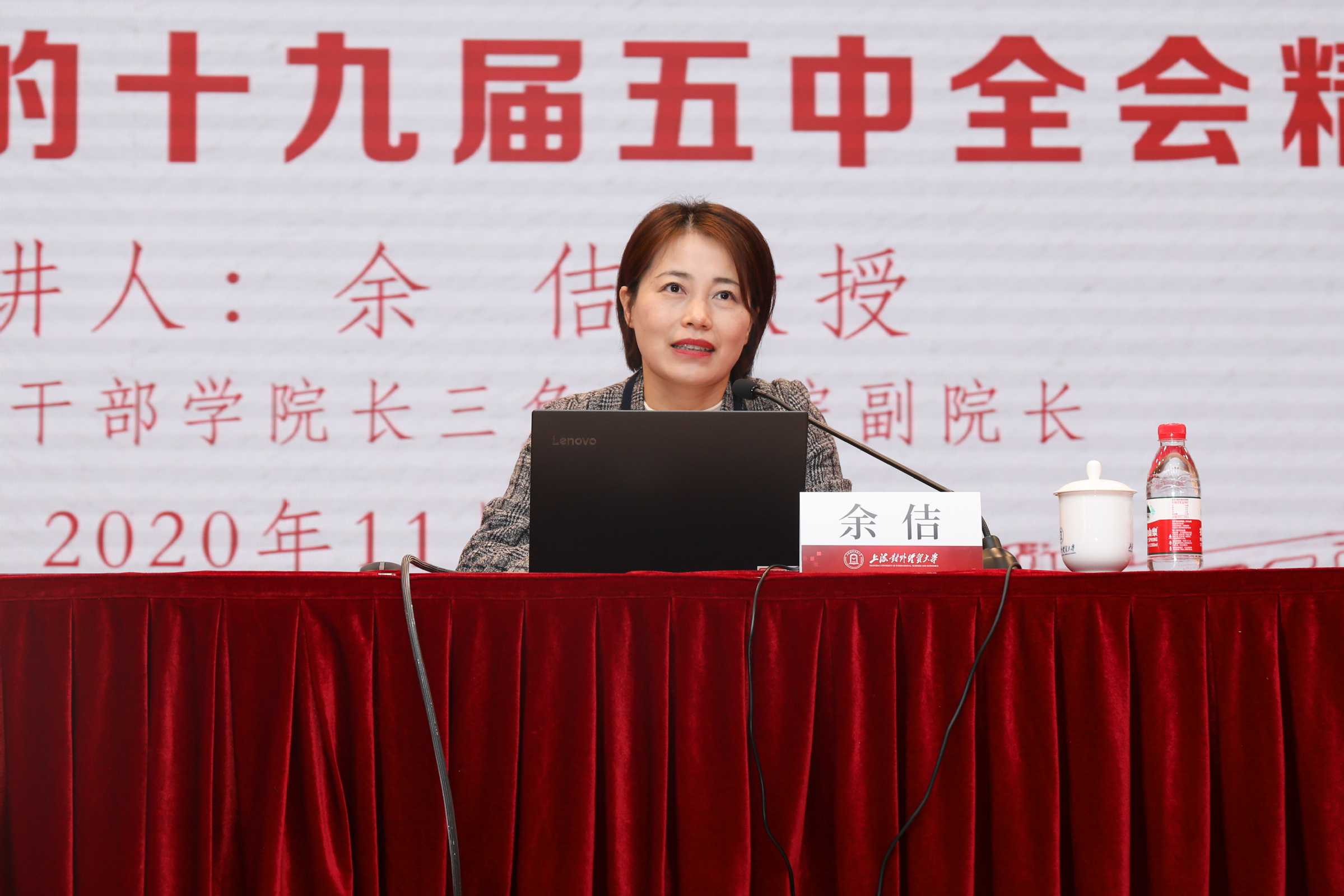 报告中,余佶围绕习近平总书记在党的十九届五中全会上的重要讲话精神,全面回顾了五中全会召开的历史背景、“十四五”规划《建议》起草过程和构成,从深刻认识我国进入新发展阶段的重大意义、有利条件和重要特征,准确把握2035年远景目标和“十四五”时期我国发展的指导方针、主要目标、重点任务,牢牢把握构建新发展格局的战略构想和重要着力点,坚持党的全面领导、动员各方力量为实现“十四五”规划和2035远景目标而团结奋斗等方面对十九届五中全会精神作了全面宣讲和深入解读。余佶教授的报告政治站位高、理论功底深、内容丰富、语言生动,对学校广大党员、干部、师生进一步学习领会党的十九届五中全会精神具有重要的现实意义和指导作用。