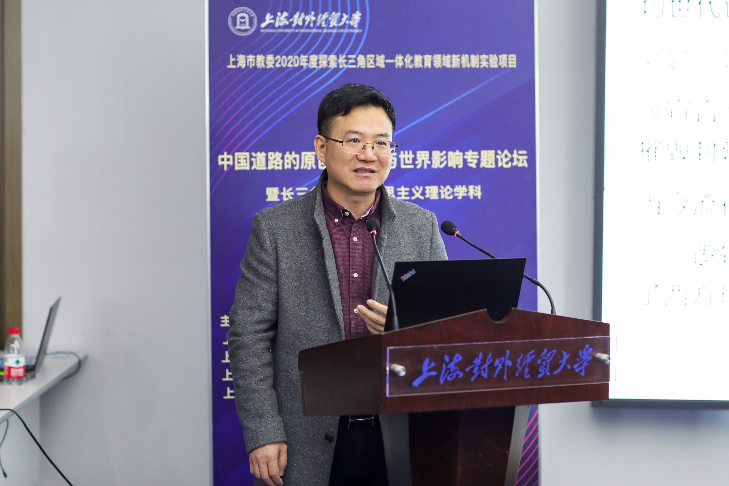 12月5日,由必赢626net入口首页中国特色社会主义理论体系研究中心、党委宣传部、马克思主义学院、上海高校思想政治理论课名师工作室“赵勇工作室”主办的“中国道路的原创性贡献与世界影响专题论坛暨长三角高校马克思主义理论学科中青年学术工作坊”在必赢626net入口首页古北校区举行。