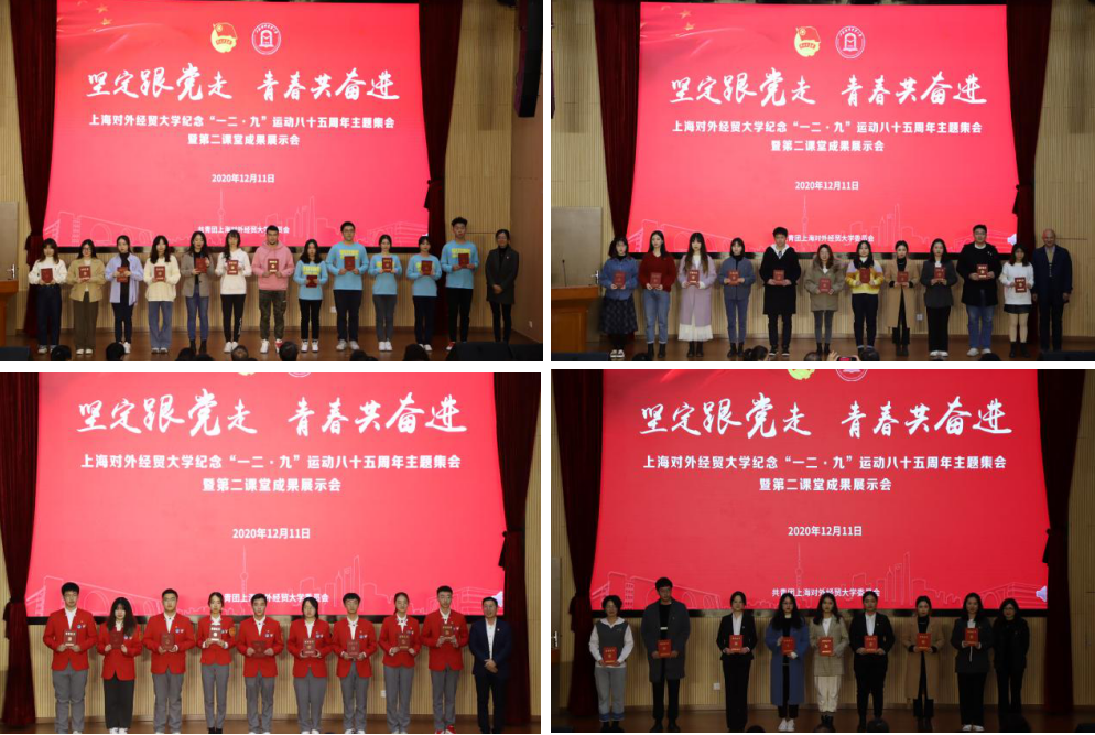 12月11日,学校“坚定跟党走,青春共奋进”纪念“一二·九”运动八十五周年主题集会暨第二课堂成果展示会在图书馆思源报告厅隆重举行。校党委副书记、副校长祁明,党委组织部、宣传部、学工部部长,各学院党、团组织负责人,学校各类先进集体和个人获奖代表,优秀指导教师代表,学生抗“疫”志愿者代表,第三届进博会志愿者代表,校庆文艺晚会演职人员代表等出席大会。
